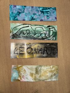 Enkaustik ist eine alte Maltechnik, bei der heißes Wachs mit Hitze (z.B. Föhn oder Bügeleisen) leicht geschmolzen und dann auf einem Maluntergrund aufgetragen wird. Es enstehen einzigartige Formen und Muster.